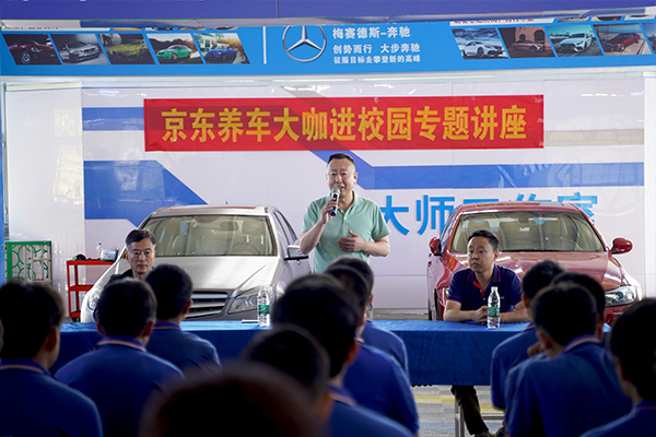 在互动环节,同学们再也按捺不住好奇心,纷纷举手提问。“总监您好,互联网会不会让传统维修技术变得没那么重要?”“我们现在学的新能源检测技能,在京东养车这样的平台能有哪些发展方向?”